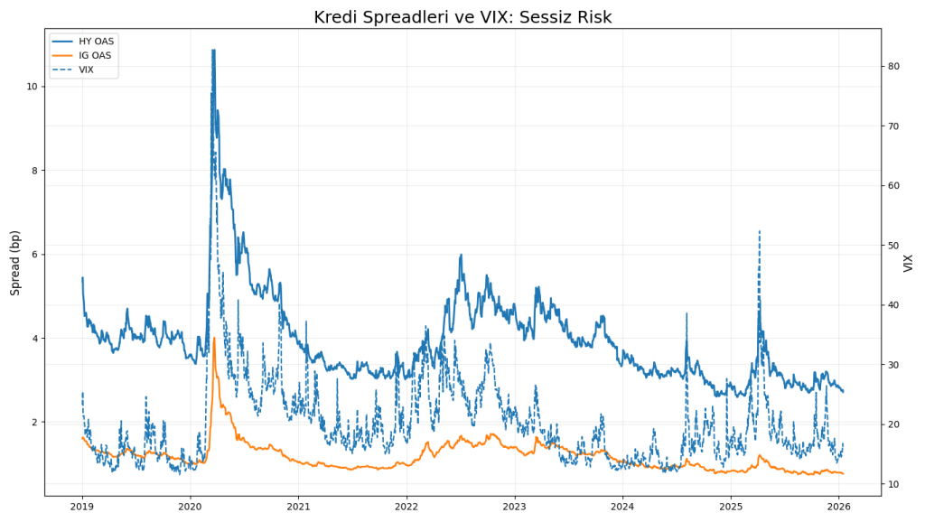 Kredi piyasaları, geçtiğimiz haftalarda gündemimize aldığımız şekilde, şu aşamada sakin. HY ve IG spreadler kontrollü, VIX görece düşük seviyelerde.