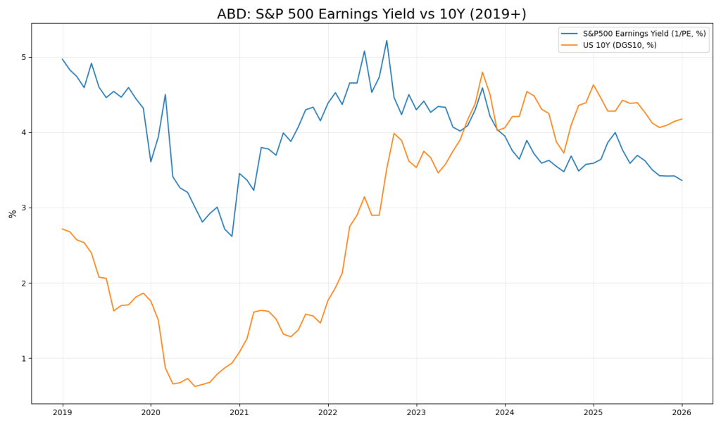 Son enflasyon verilerine rağmen ABD 10 yıllık tahvil faizleri kalıcı şekilde gerilemiş değil. %4 civarında seyreden bu seviye, artık piyasa için teknik bir eşik değil, yapısal bir referans noktası haline gelmiş durumda. Bu seviye şunu söylüyor, hisse senetleri için alternatif getiri hala güçlü, uzun vadeli nakit akışlarının bugünkü değeri hala baskı altında, yüksek çarpanlı hisseler için alan dar.